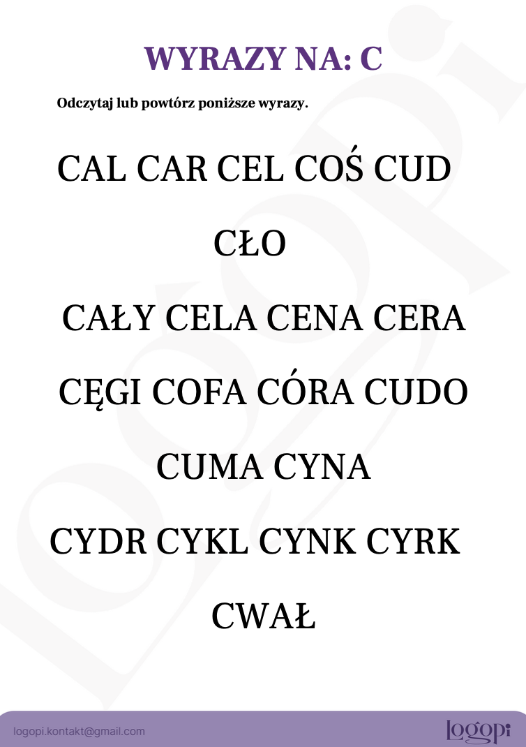 Odczytaj lub powtórz poniższe wyrazy (3-4-literowe)