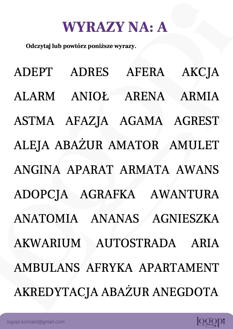Odczytaj lub powtórz poniższe wyrazy (5+ literowe)