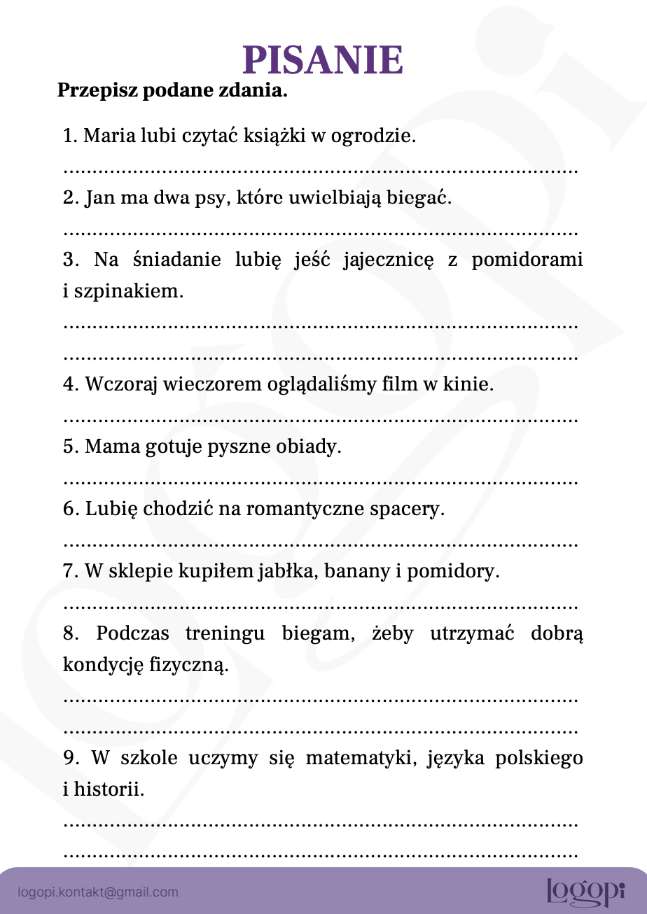 Przepisz zdania