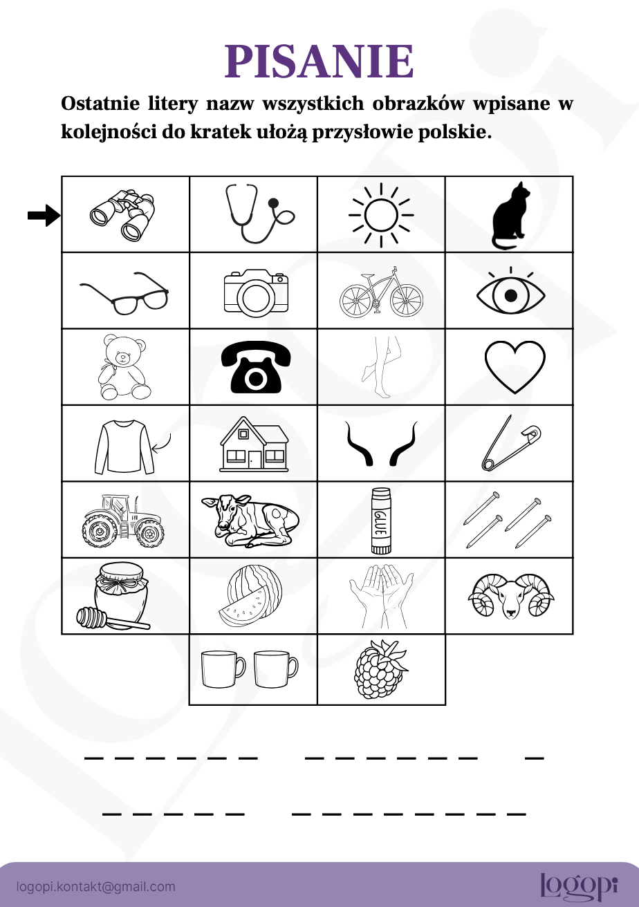 Przysłowia, rebusy, literowanie (ostatnie litery)