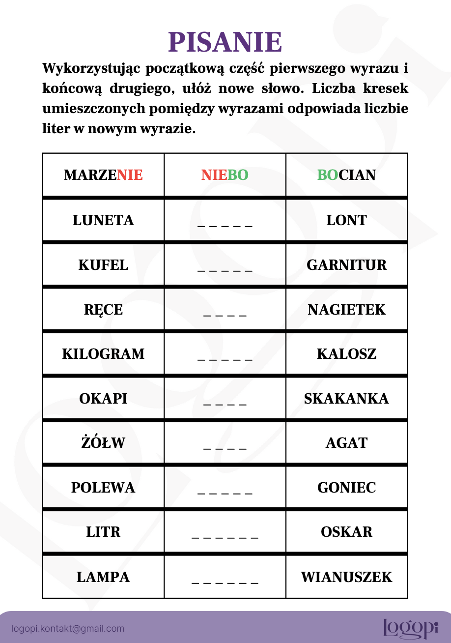Rebusy słowne – utwórz wyraz z początkowych i końcowych części podanych słów 2